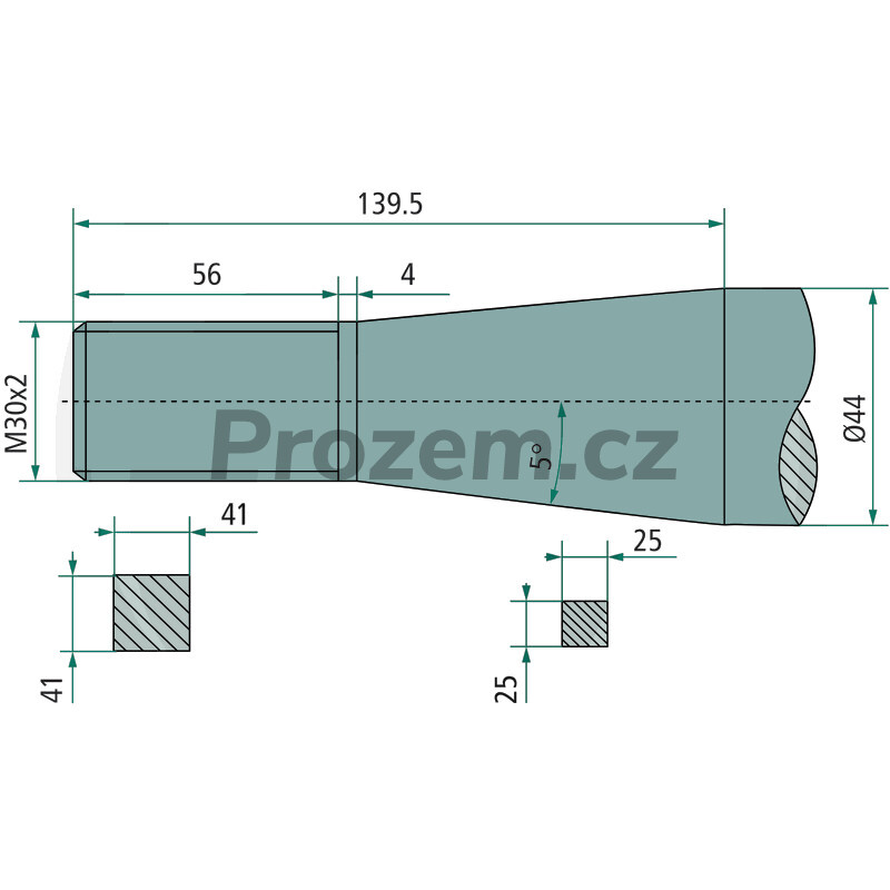 Hrot zahnutý s kuželovou maticí, délka- 940 mm, závit- M30x2 mm, hrot na přidržovač. Hmotnost 6,52 kg.