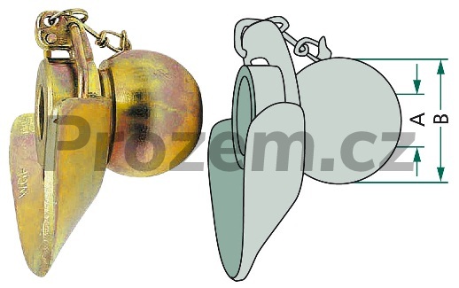 Koule s límcem zinkovaná Kat. 3 - 3, A - 37 mm, B - 64 mm (CBM). Koule s límcem spodního tříbodového závěsu zinkovaná Kat. 3 - 3. Balení obsahuje: kouli s límcem a řetěz se speciální závlačkou.