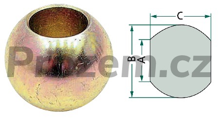 Koule spodního tříbodového závěsu zinkovaná Kat.3-2. A- 37mm, B- 56mm, C- 45mm.