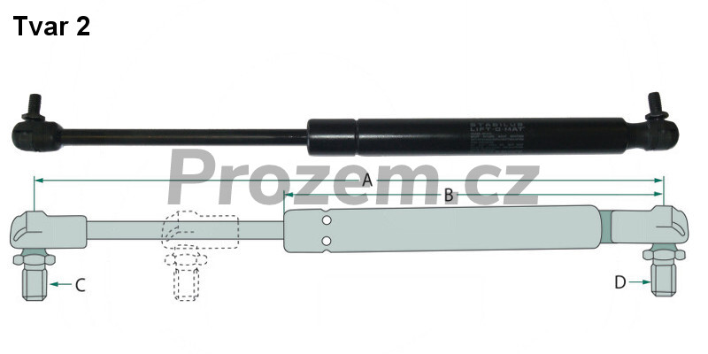 Plynová vzpěra 485/240 mm, 150 N, na dveře, přední okno, zadní okno pro Massey Ferguson, 3904695M1, 3805354M1, 3804759M1.