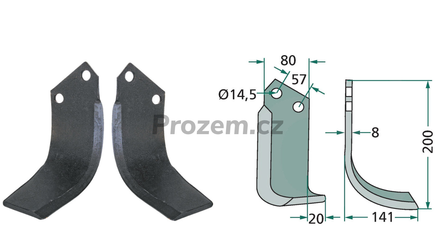 Frézovací klenutý nůž levý pro Pegoraro, ACAD4586, 57/14,5/200 mm