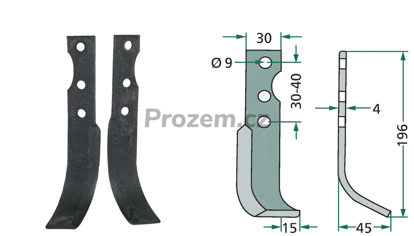 Frézovací klenutý nůž levý pro Solo, 5043158, 30/40/9/196 mm