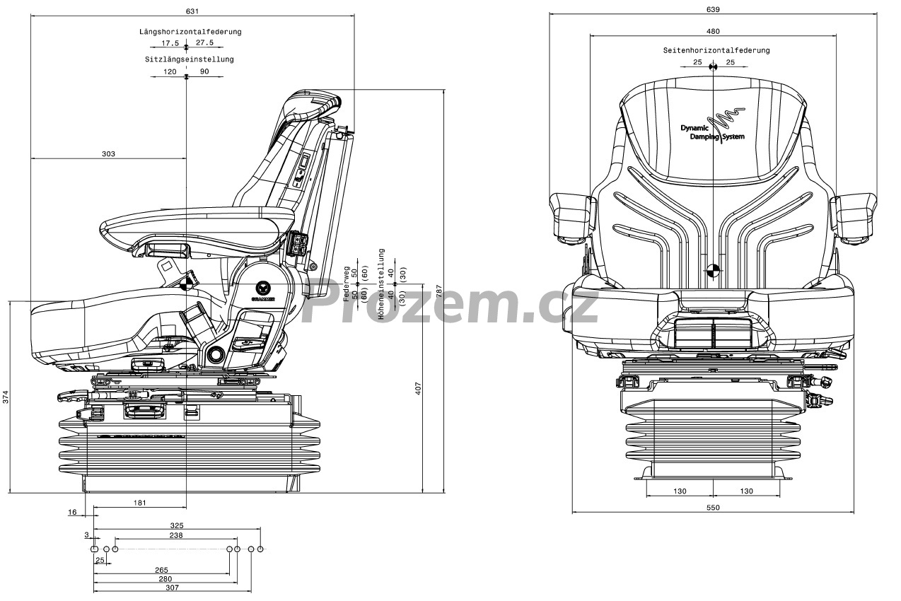 Sedadlo GRAMMER Maximo Dynamic, pro Fendt, stará konzole, 1288545CL, MSG95AL/741 12V, MSG 95AL/741 12V je vhodné pro střední a těžké traktory. Nový systém Dynamic Damping doplňuje osvědčené pneumatické odpružení a zajišťuje redukci vibrací při nižších frekvencích. Zároveň zabraňuje vertikálním nárazům při silném zrychlení způsobených nerovností terénu. To znamená nejen výrazné odlehčení pro řidiče, ale i nový rozměr komfortu odpružení, produktivity a hospodárnosti.