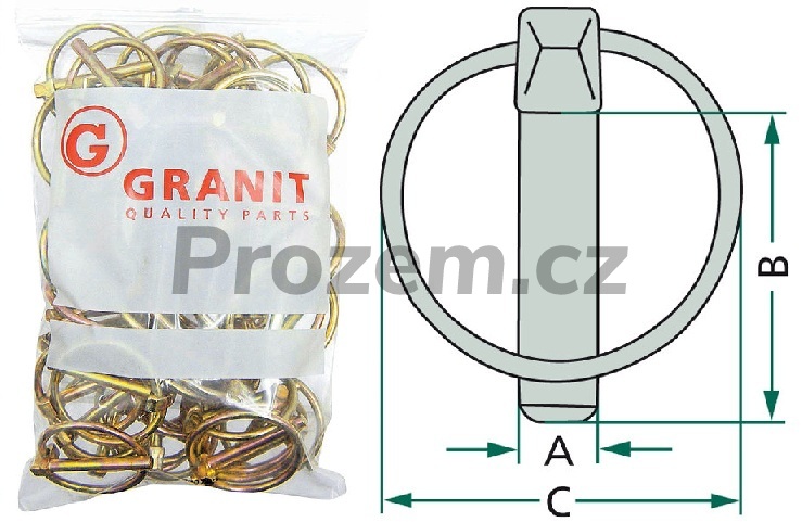Pozinkované Sklopné závlačky Ø 6 mm, A- 6mm, B- 41mm, C- 47mm, standardní provedení. Balení obsahuje 50kusů.
