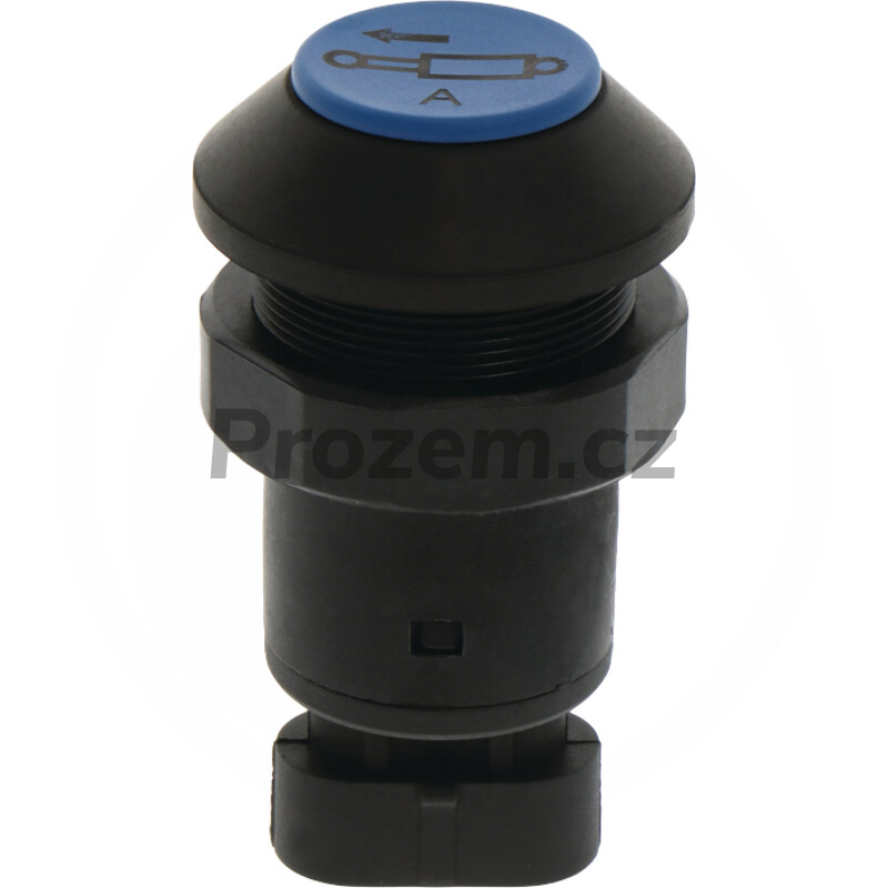 Tlačítko pro přední snížení pro Deutz Fahr, Lamborghini. DTW Přední snížení, spínací napětí 48 V, modré, normálně otevřený kontakt, celkový zdvih spínacího tlačítka: 5 mm, Ø 30 mm zásuvné připojení (AMP Superseal 3x1,5), ochrana proti prachu a stříka