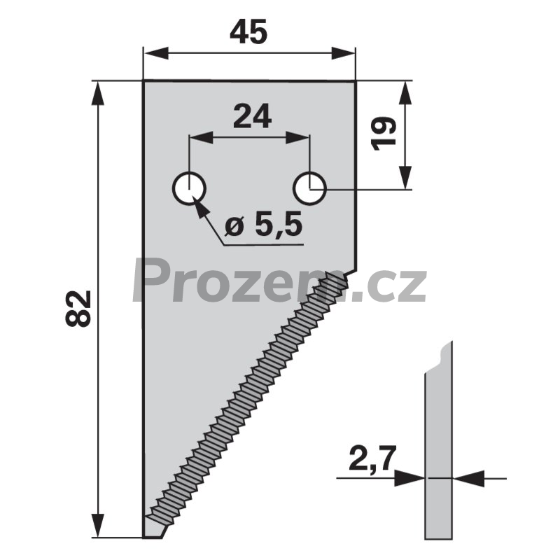 Koncová půlžabka horní ozubení pro New Holland, 82/2,7/45 mm, 80365112